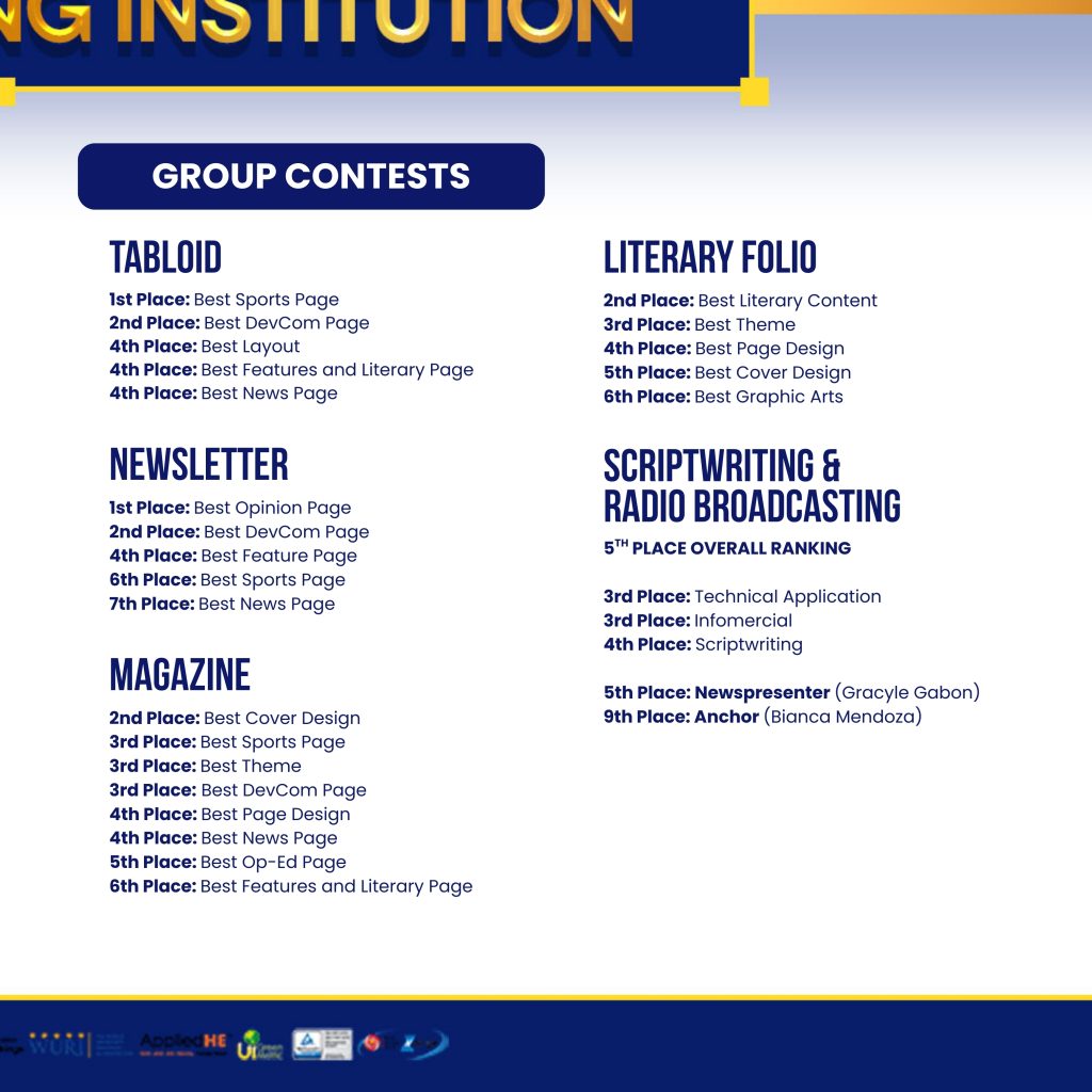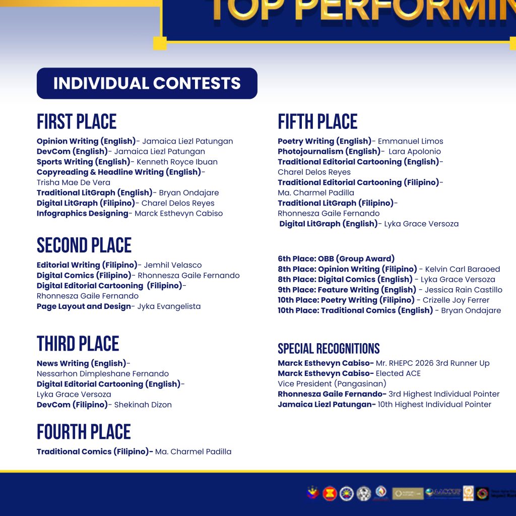 TR staffers who placed 1st to 5th are qualified to represent the region in the upcoming Luzon-Wide Higher Education Press Conference (LHEPC) in Tuguegarao City, Cagayan, on March 17-19.